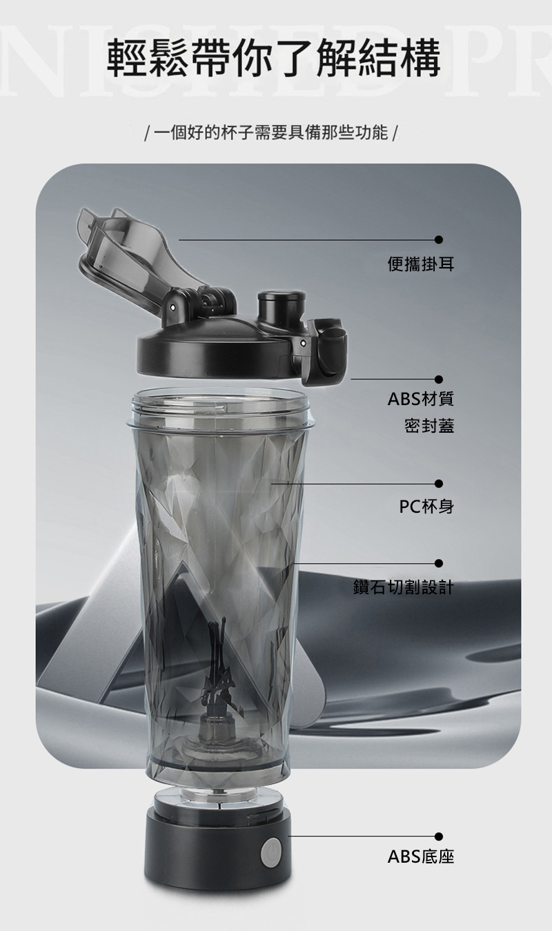 時尚外觀: 鑽石切割健身搖搖杯,防滑美觀又耐用。
