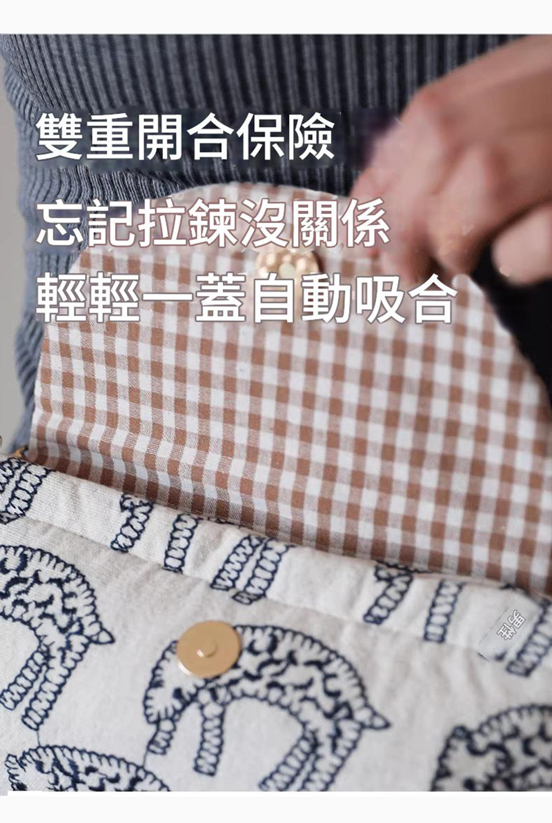 雙重安全防護:磁扣拉鍊雙保險,防盜超安心。