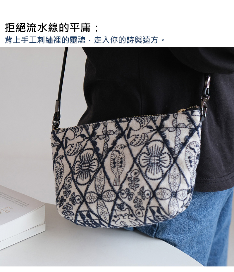 MICOACH 交響樂棉麻刺繡斜揹包