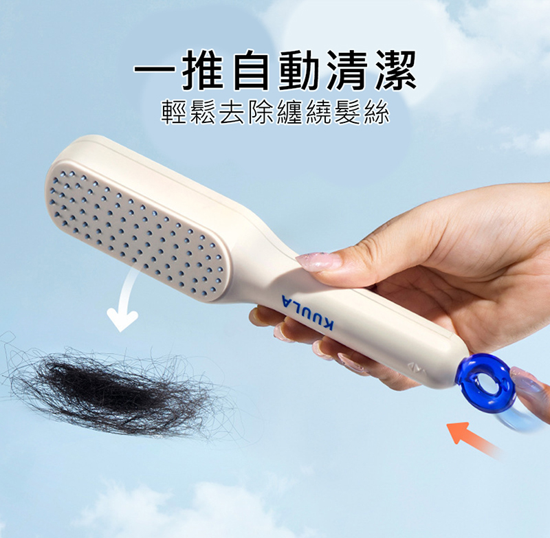 一鍵自動清潔:熱搜氣墊梳清理神器,廢髮不殘留。