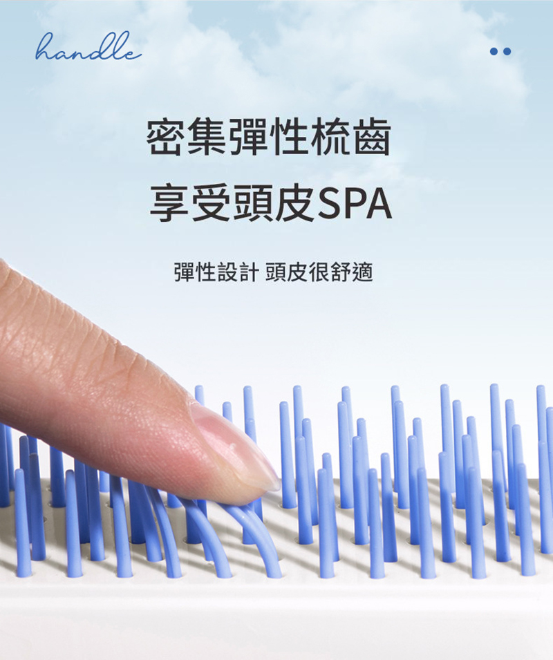 高彈力梳齒材質:頭皮SPA按摩感,舒緩壓力不傷頭皮。