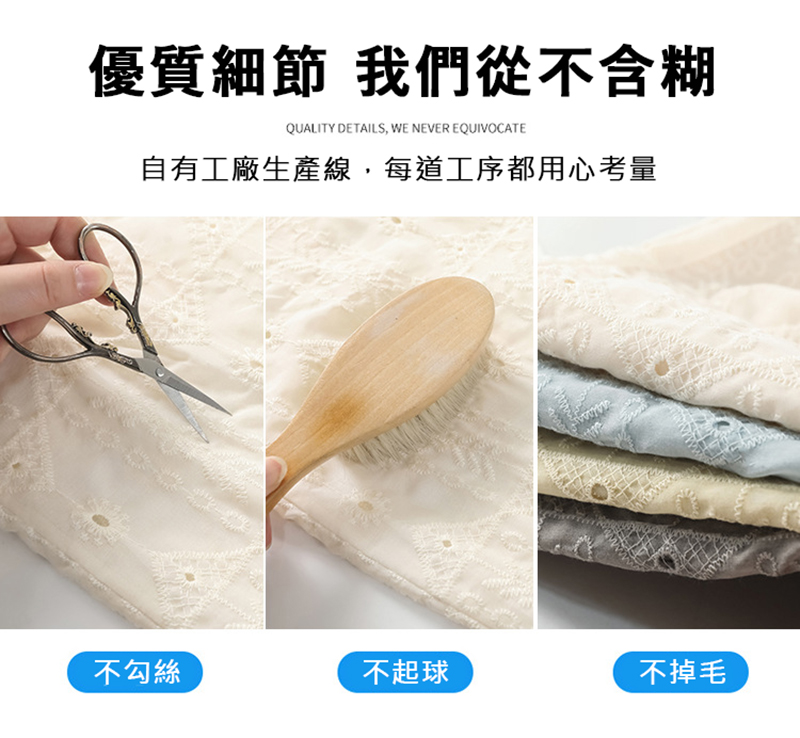 鏤空勾花:復古精緻刺繡工藝,透氣親膚不透肉。