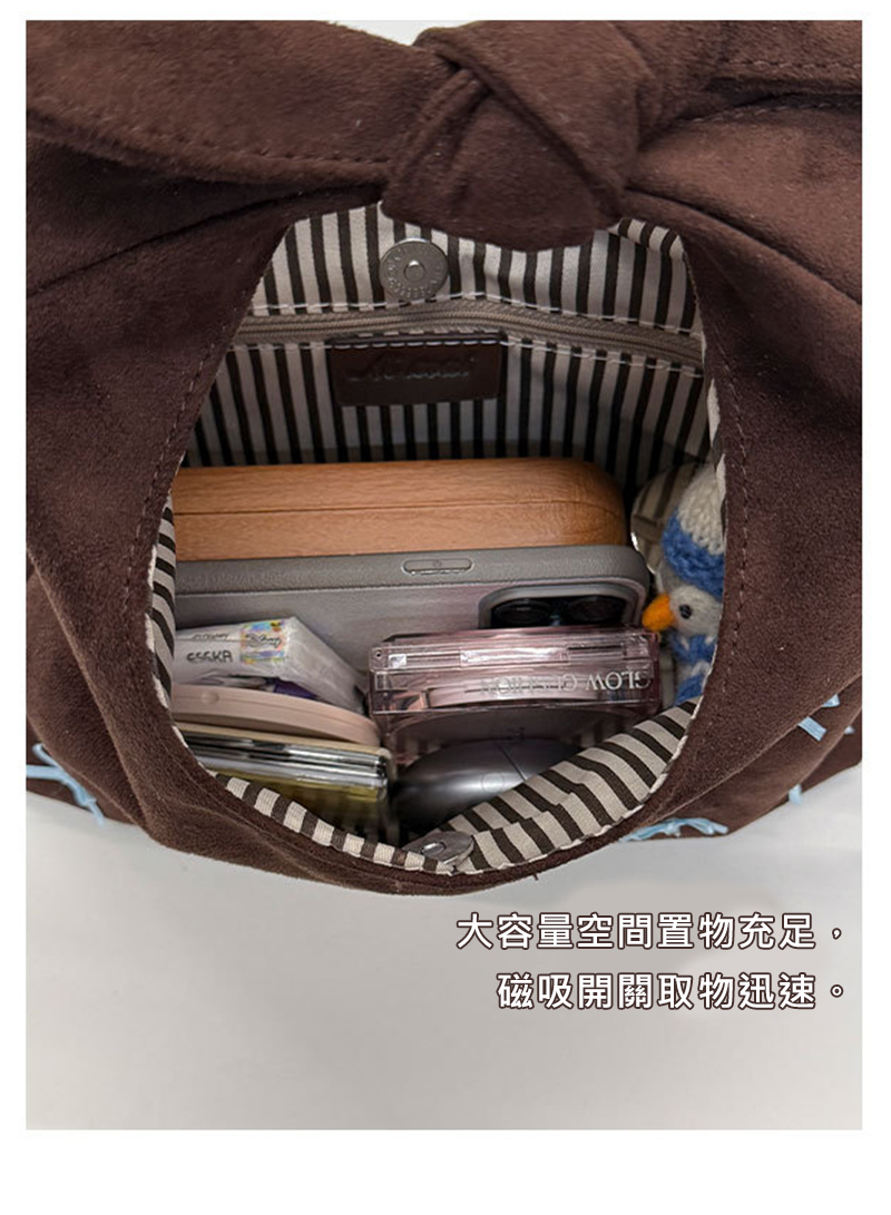 大容量磁吸托特包:空間充足,磁吸開關取物迅速。