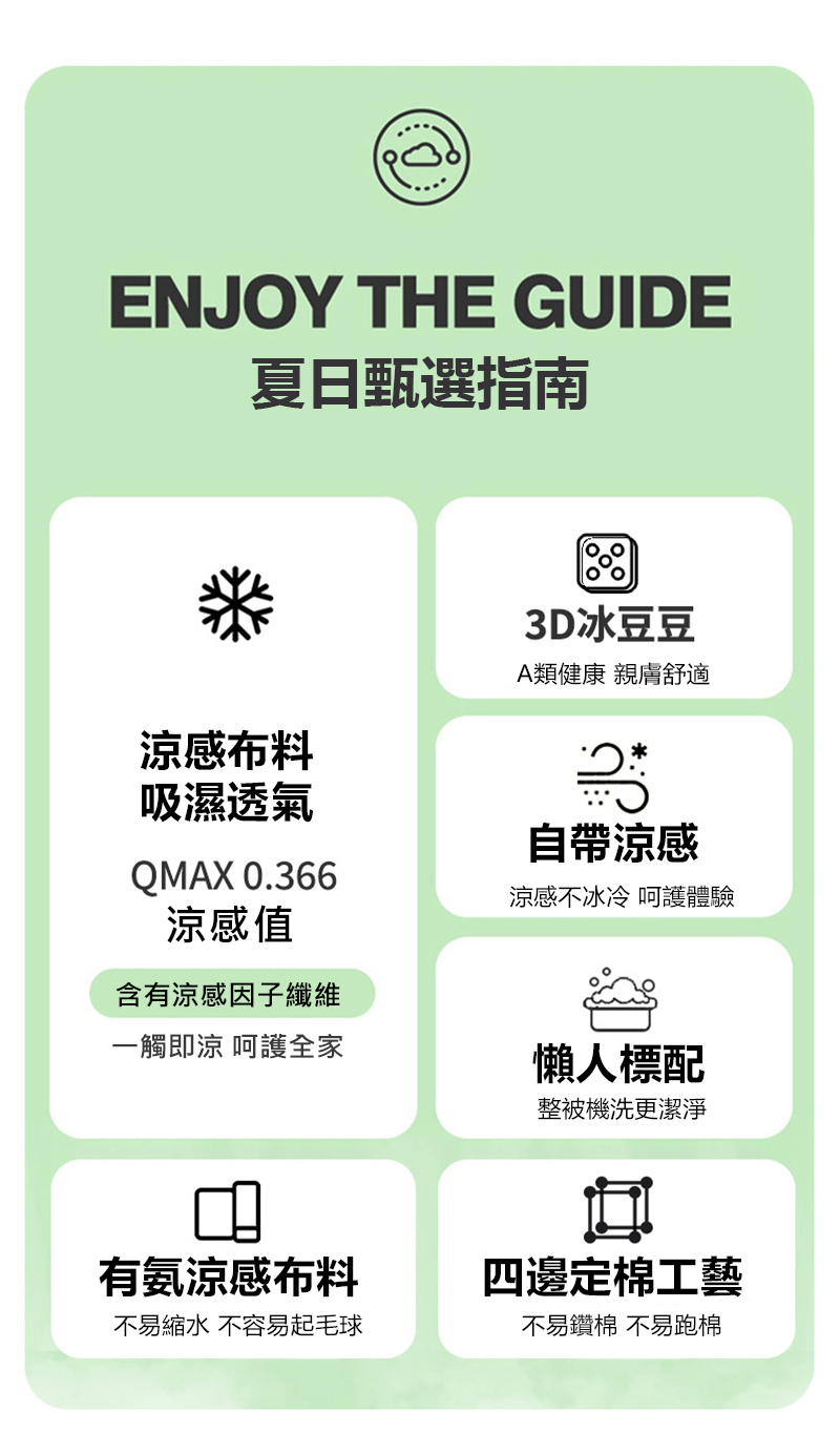 ⚜️涼感被 Q-max 0.366:瞬間降溫感爆棚,長效涼爽不悶熱。